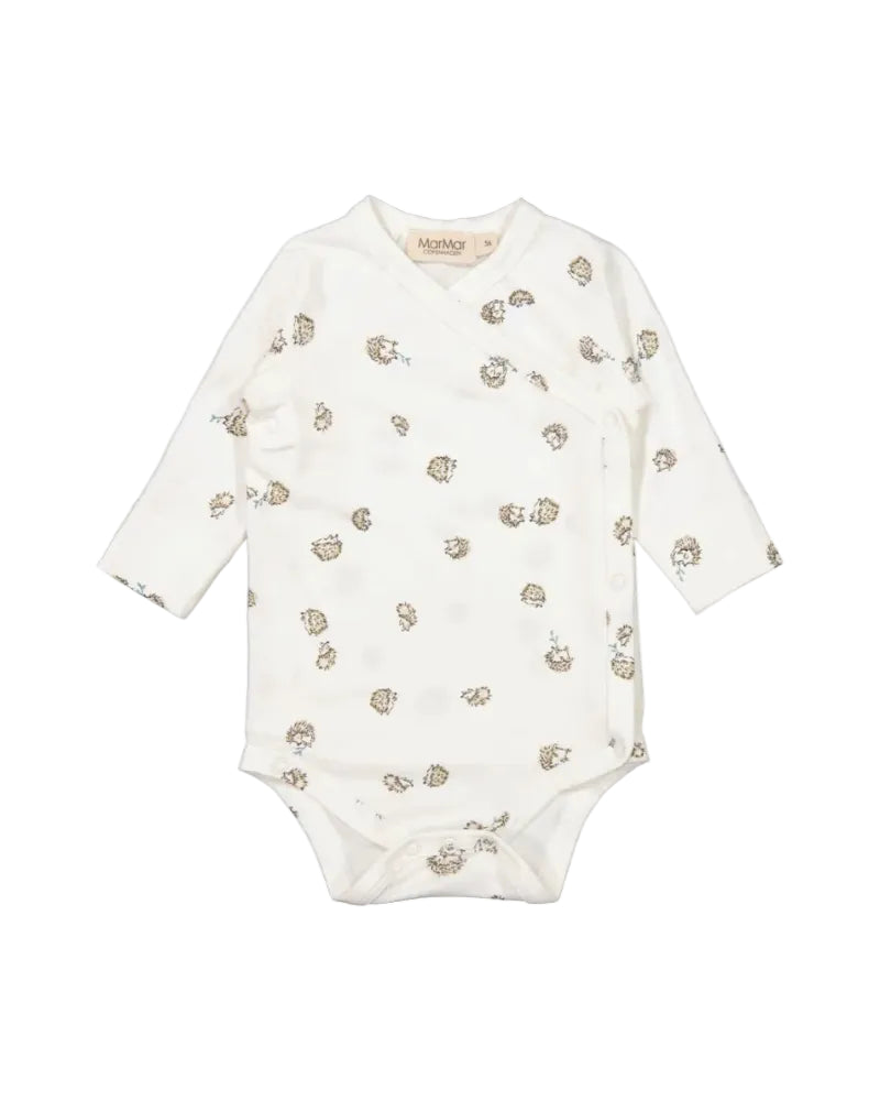 Cozy long sleeve bodysuit from MarMar Copenhagen, offering gentle comfort and easy movement for newborns, babies, and toddlers. Designed in soft cotton with a playful hedgehog print in soothing neutral tones, it’s a charming everyday essential that blends Scandinavian style with practicality.