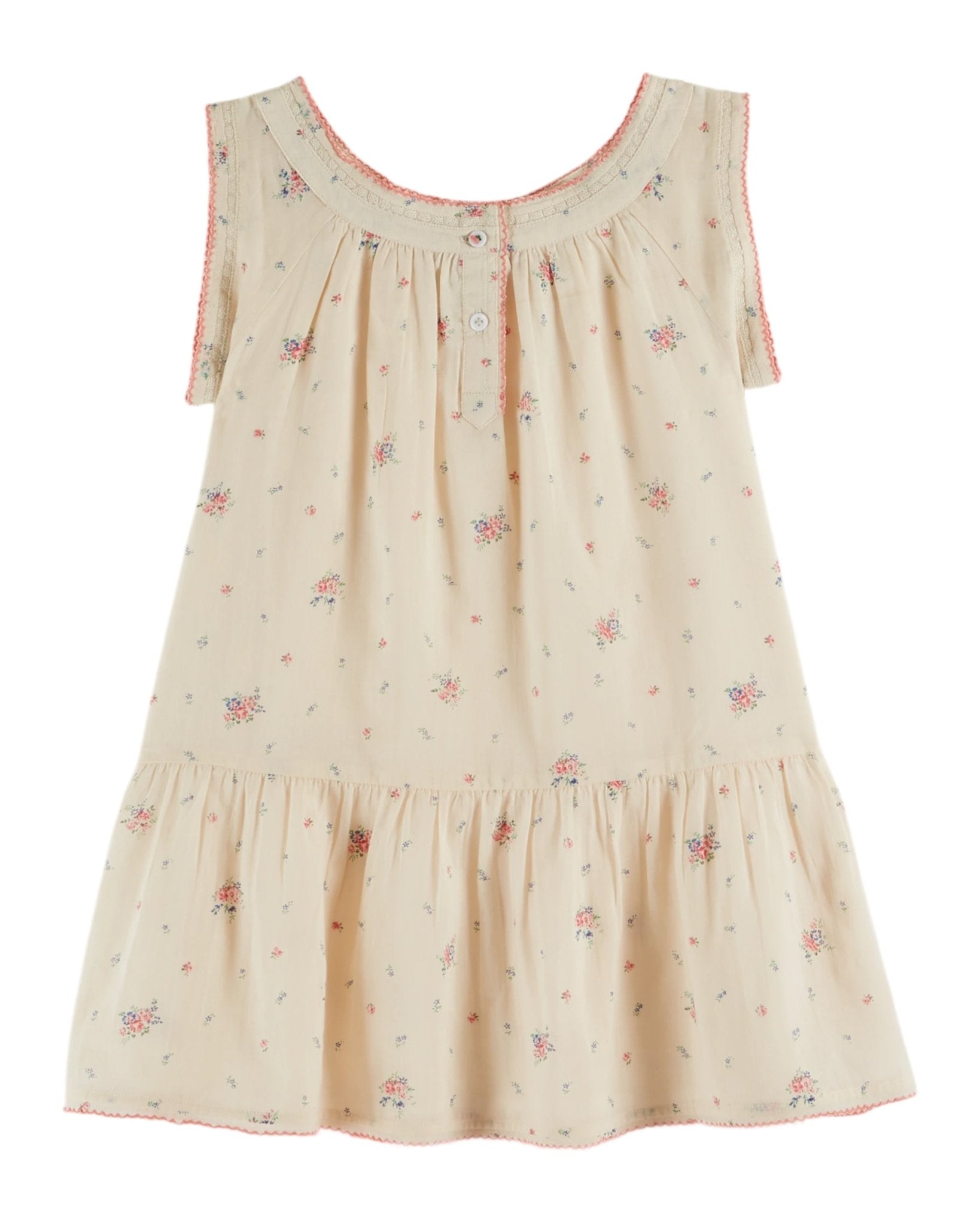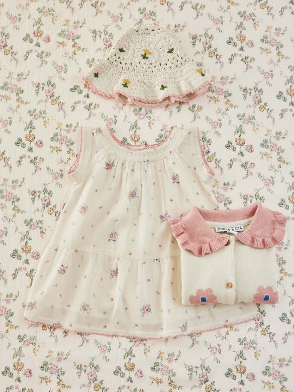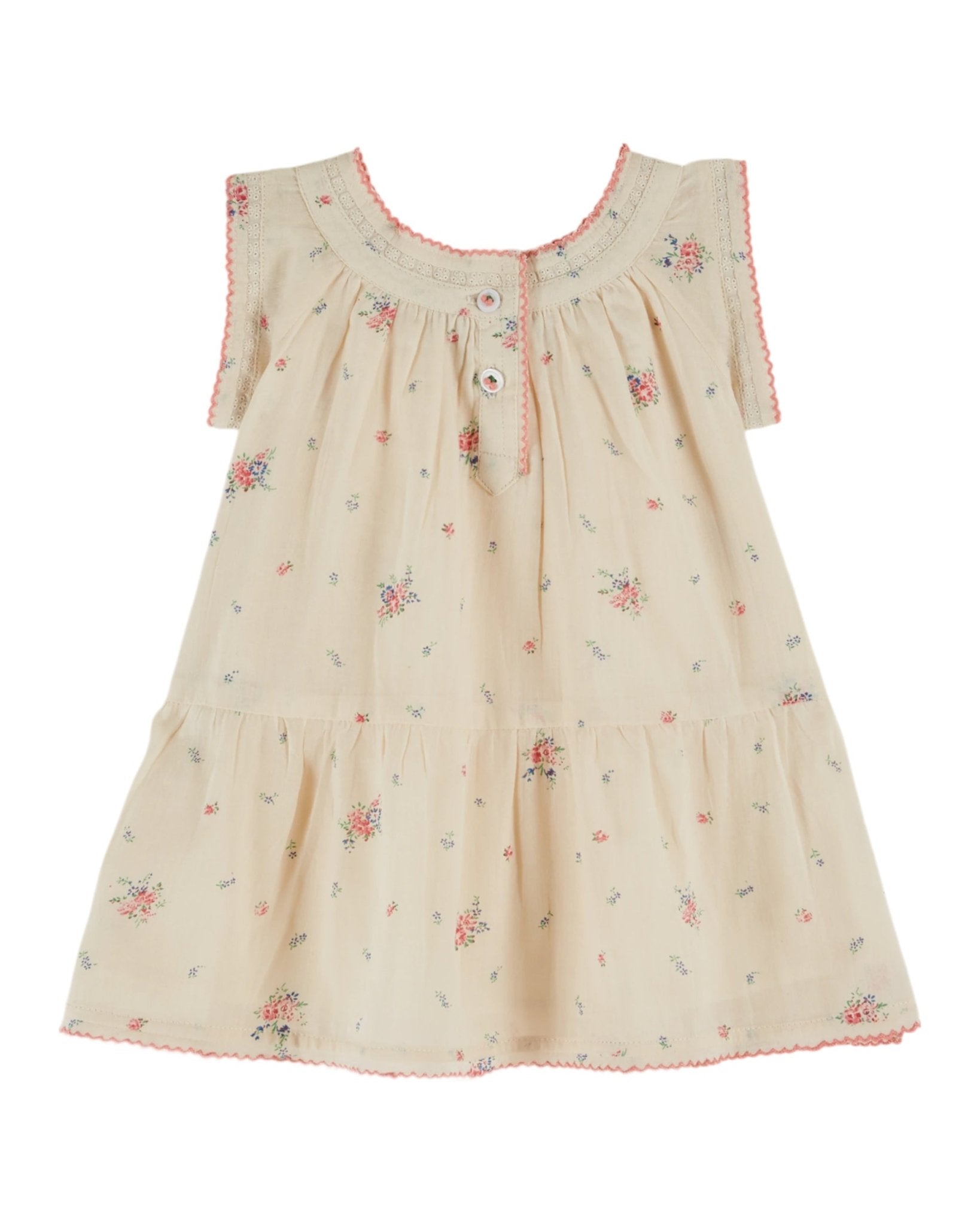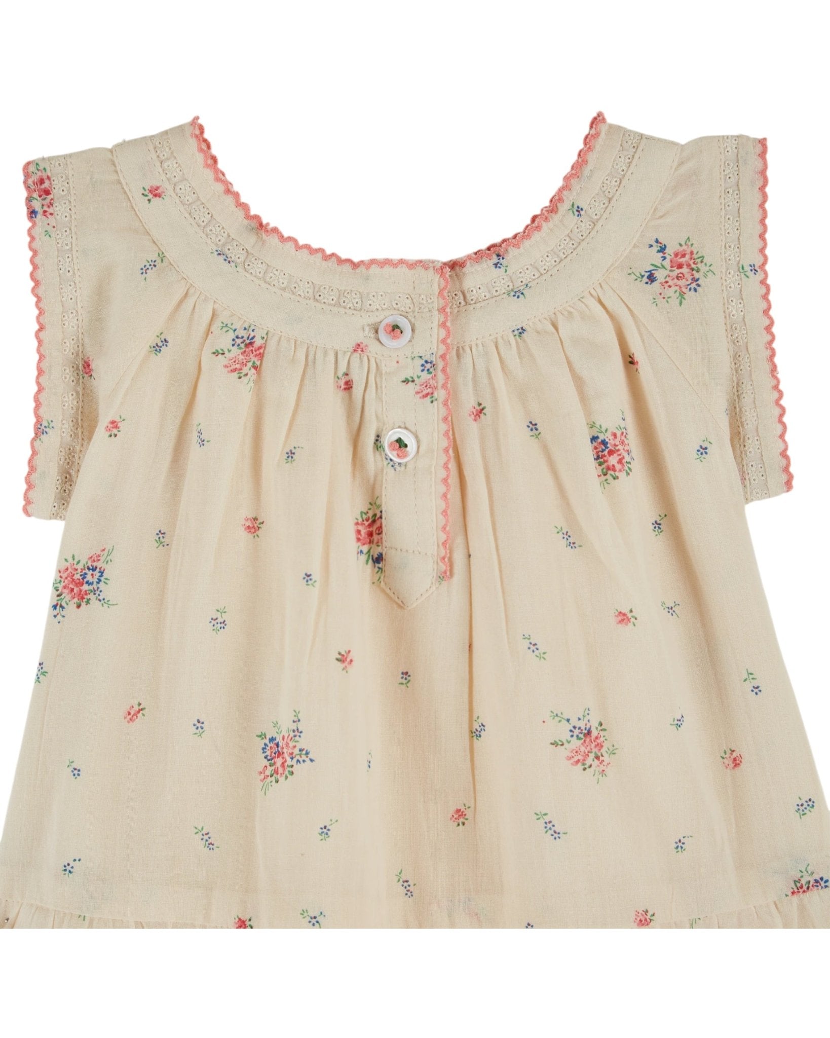 Floral baby dress with a rounded embroidered neckline, designed in Emile et Ida’s signature French vintage style for spring and summer celebrations.