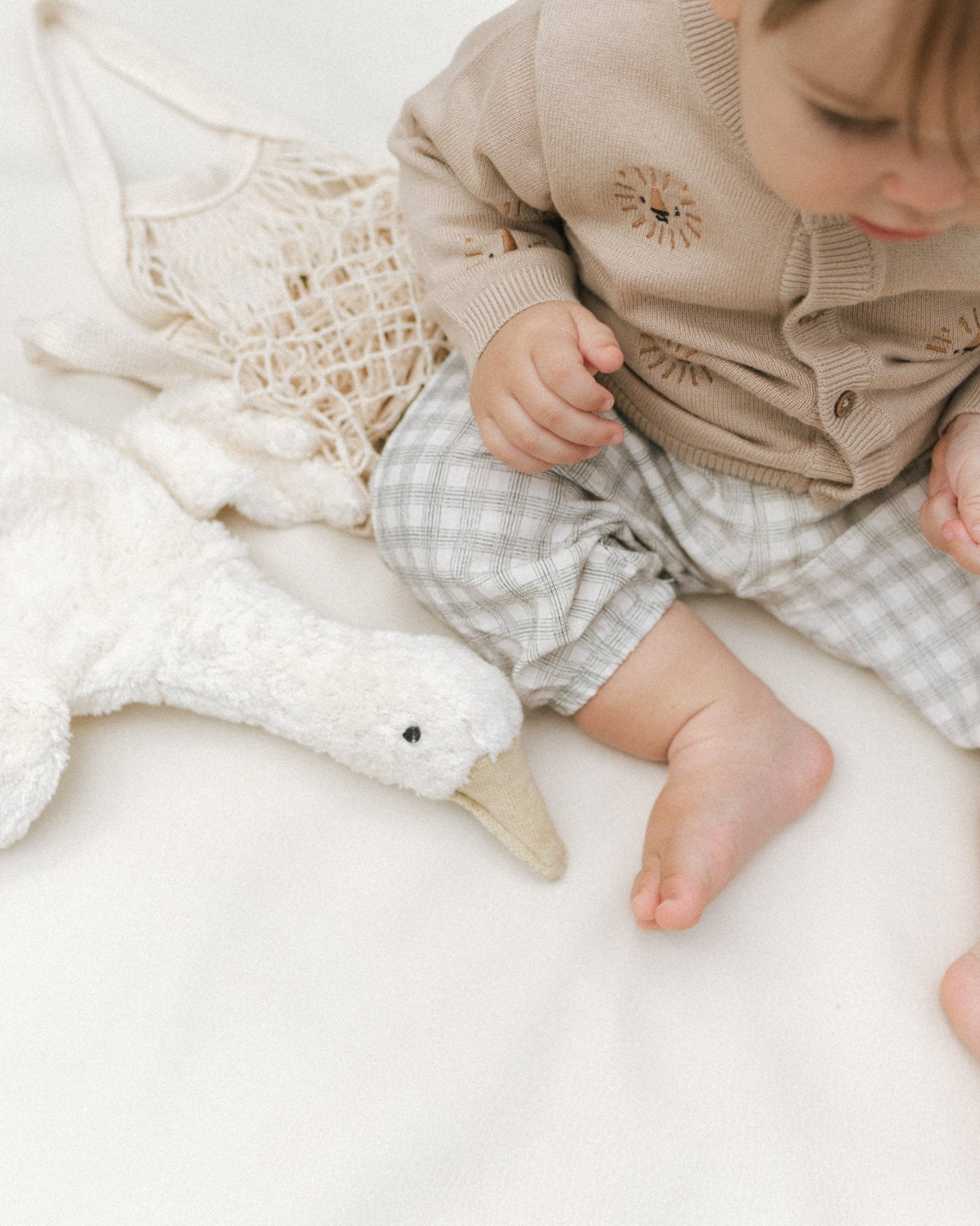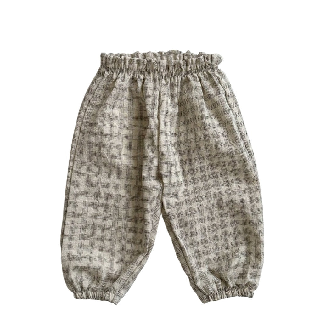 Neutral plaid cotton pants for babies and toddlers, a soft and stylish essential designed for all day comfort and effortless layering. Perfect for playtime or outings, these pants bring timeless charm to any little one’s wardrobe.