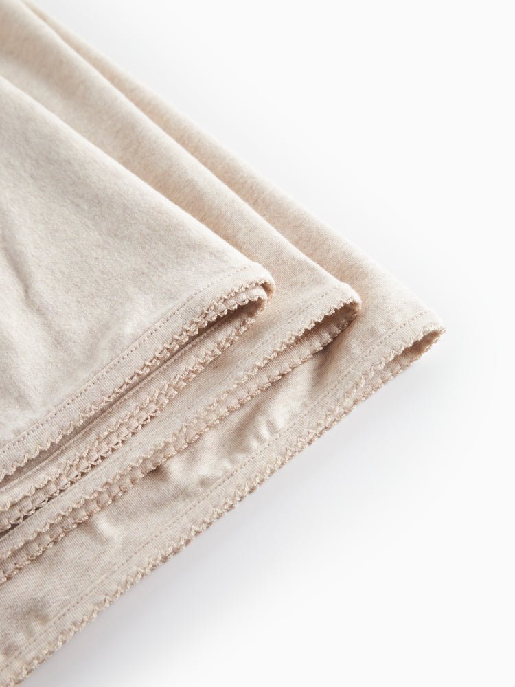Soft light beige jersey baby blanket, a beautiful gift for newborns that offers gentle swaddling and year round comfort. Crafted from a luxurious jersey knit blend, it provides plush softness and just the right amount of stretch for cozy snuggles.