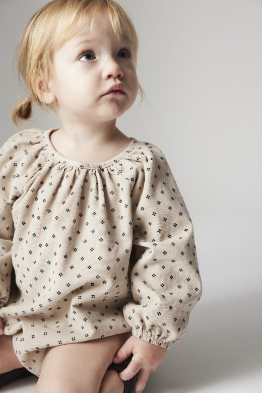 Why parents love it: The soft corduroy fabric, easy button details, and refined print make this romper a cozy, stylish choice that transitions beautifully through the cooler months.