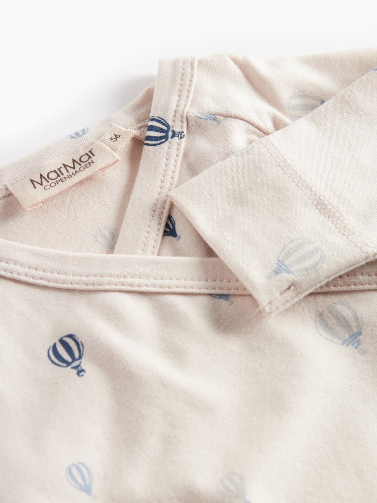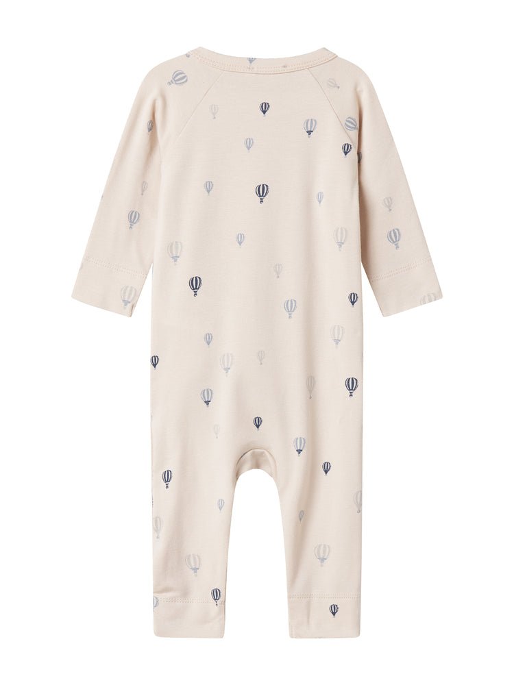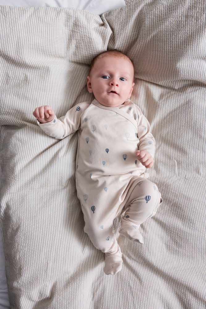 Kimono wrap jumpsuit with airballoon print for newborns and baby boys, a cozy essential for layering and everyday adventures. Crafted from luxuriously soft micro Modal knit, it offers gentle warmth, stretch, and breathability for delicate skin.