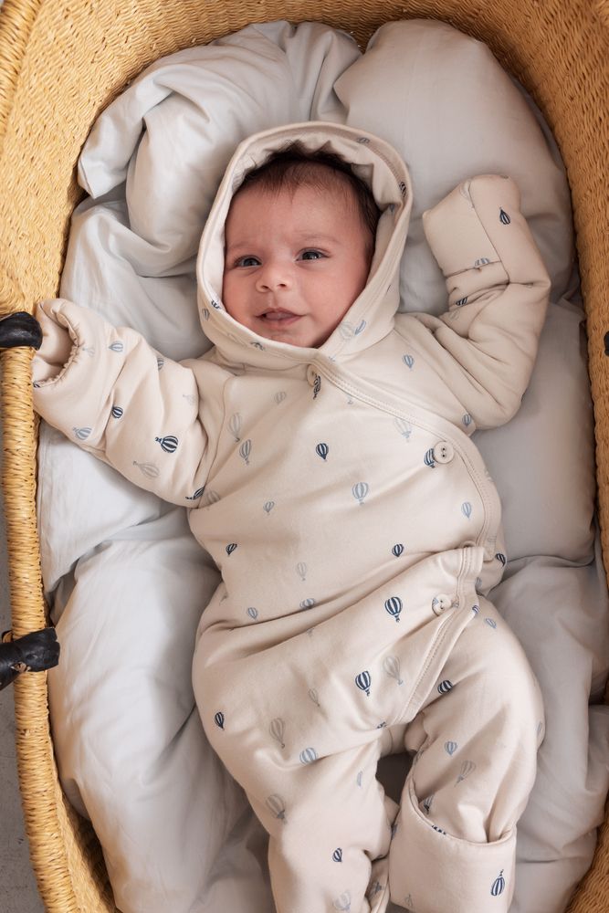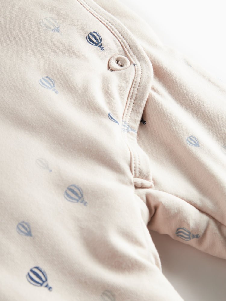 Air balloon print jumpsuit for newborn and baby boys, a cozy duvet style suit made for soft warmth and playful charm. Crafted from lightweight micro Modal knit, it offers breathable comfort and gentle stretch for all day wear.