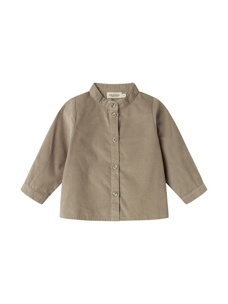 Soft cotton button down shirt for baby and toddler boys in a refined mud tone, designed for elevated everyday wear through fall and winter. Crafted from 100% cotton, it offers breathable softness and effortless sophistication for any occasion.