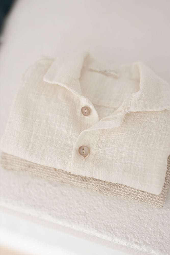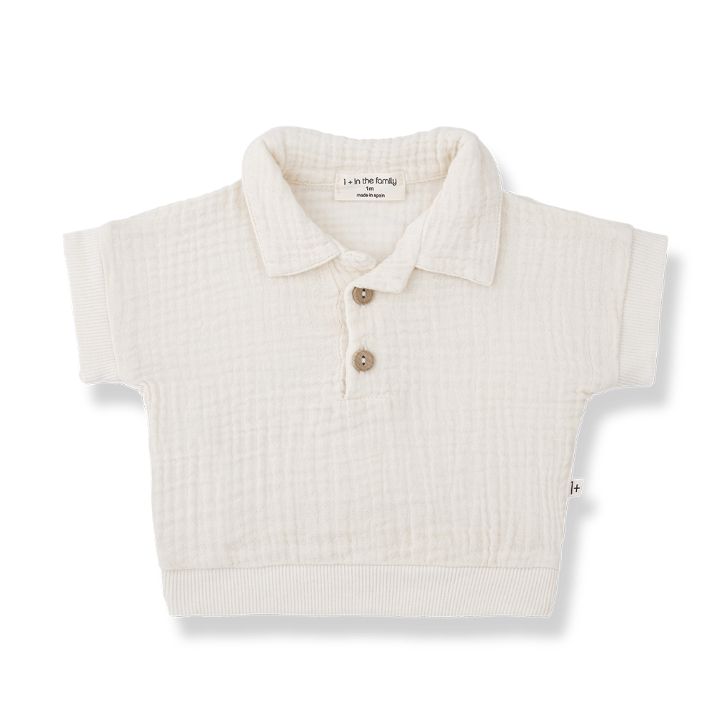 Off-white polo t-shirt for baby boys from 1+ In The Family, a timeless spring and summer essential designed for comfort and everyday elegance. Crafted from soft, breathable cotton, this classic short sleeve polo is easy to mix and match for playdates, family outings, or special occasions.