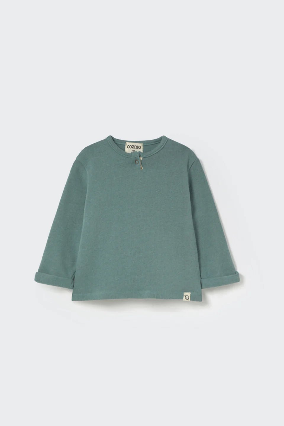 Toddler green long sleeve top in buttery soft cotton, perfect for cozy winter outfits and everyday play. Lightweight and breathable, it keeps little ones comfortable while pairing effortlessly with favorite layers.
