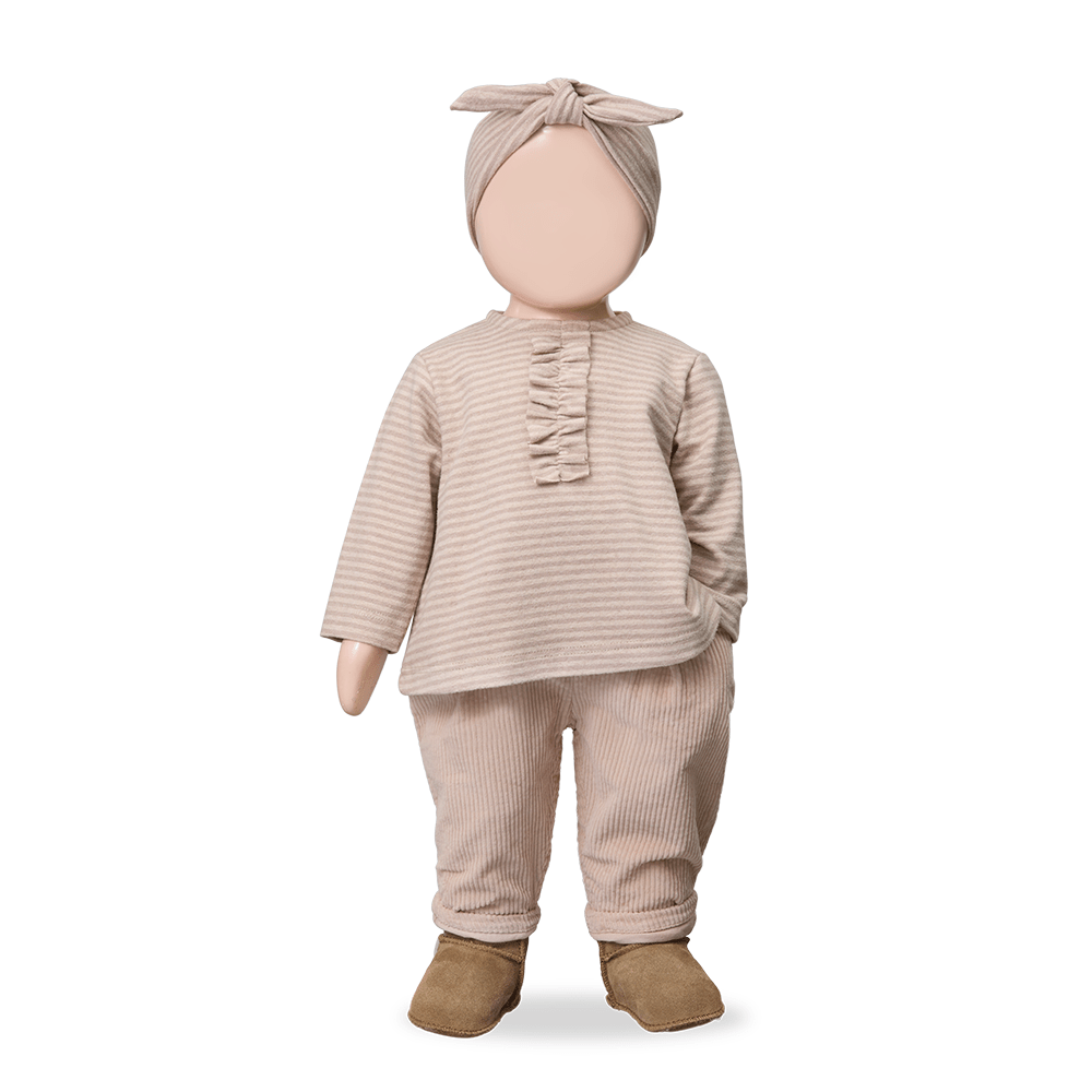 Striped knit baby tee in nude for baby girls, a chic long sleeve layer for fall and winter with everyday sophistication. Crafted for gentle stretch and easy wear, it brings soft comfort and sweet detail to any outfit.