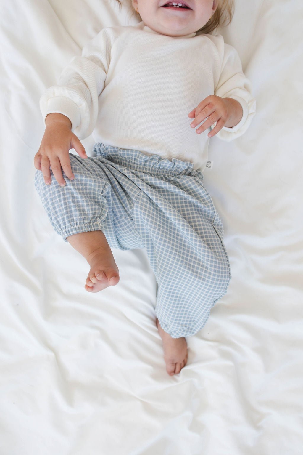 Light blue plaid baby and toddler pants in a linen look, designed for all-day comfort and effortless style. Crafted from a soft cotton blend, these lightweight pants bring breathable ease to every season while keeping little ones cozy and stylish.