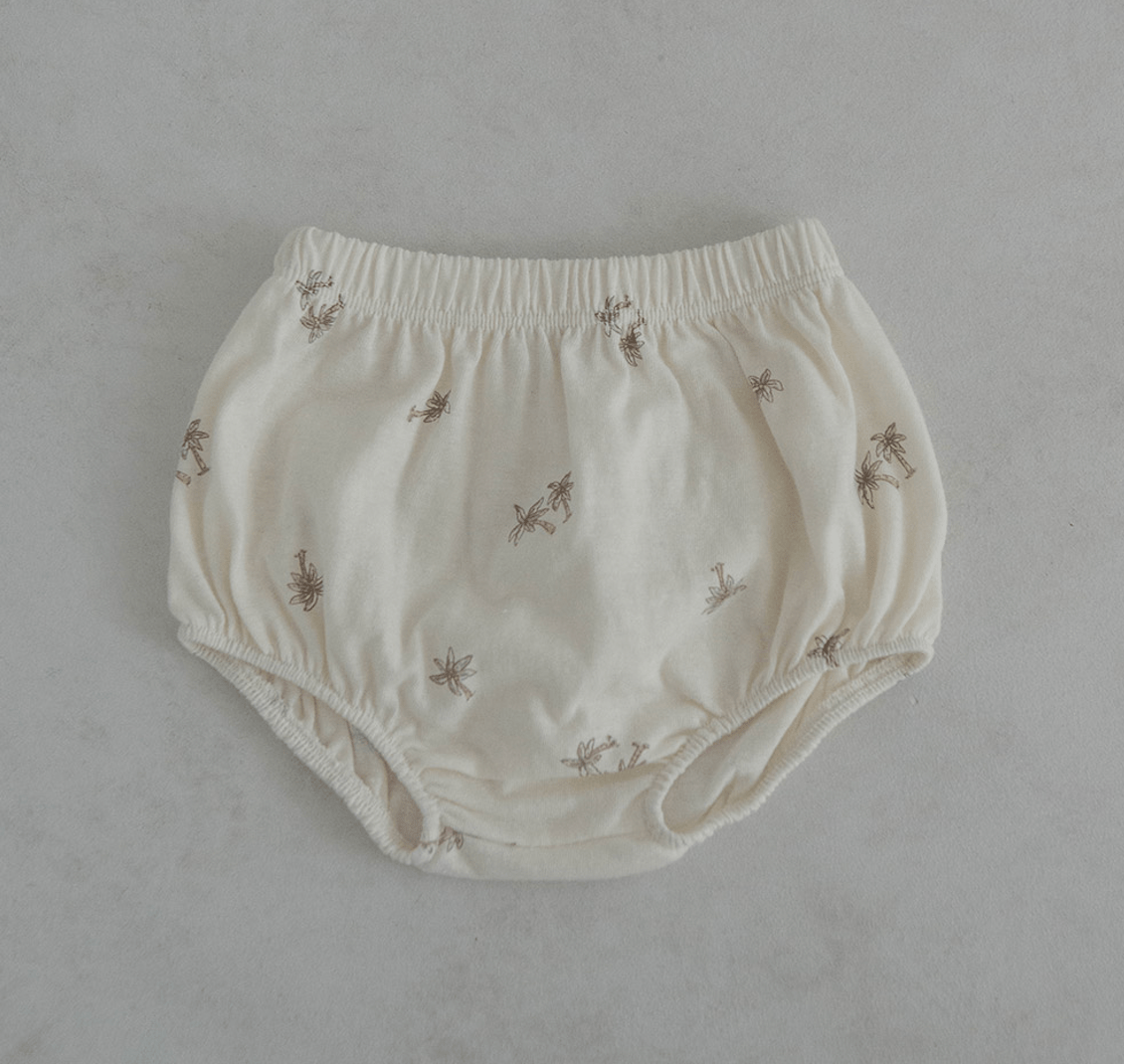 Peekaboo "Alo" Short Sleeve Top + Bloomer in Ivory Palm Tree